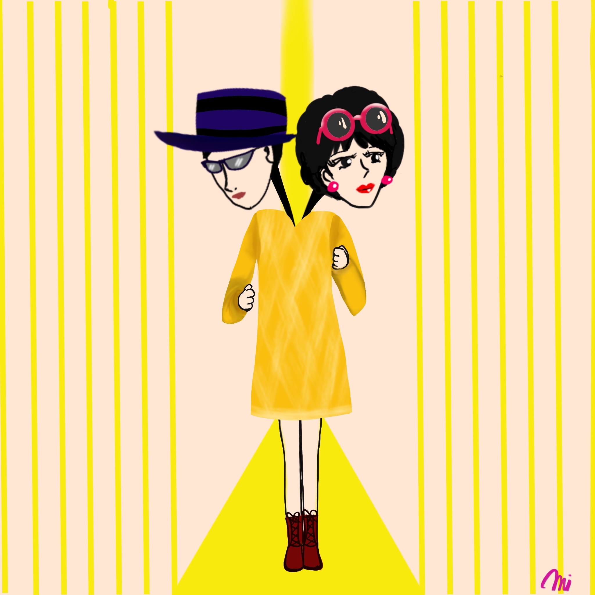 ・黄色いワンピースと登山ブーツ(胴体と四肢)の彼女は、主に行動パターンを司っているようです。わざわざ行動にパターンをつけたのは、真っ直ぐ進む!(正直な道という意味が強いよう)という非常に強い意思であり性質です。ワンピースなのは、あなたに向けたメッセージです。自分に言い聞かせなくても、いちいち確認しなくても、私は私の道を進むんだから。余計なこと(思考を使った命令、圧力)をしたら、牢獄にいるのと同じ感覚(横にある黄色い縦線)に陥るから止めてね!だそうです。