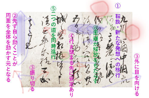 手紙全体から発信されている大きなテーマは「転換」です。古い考えにこだわらず新しい発想に移行すべきだという本人の思いが込められているのでしょう。