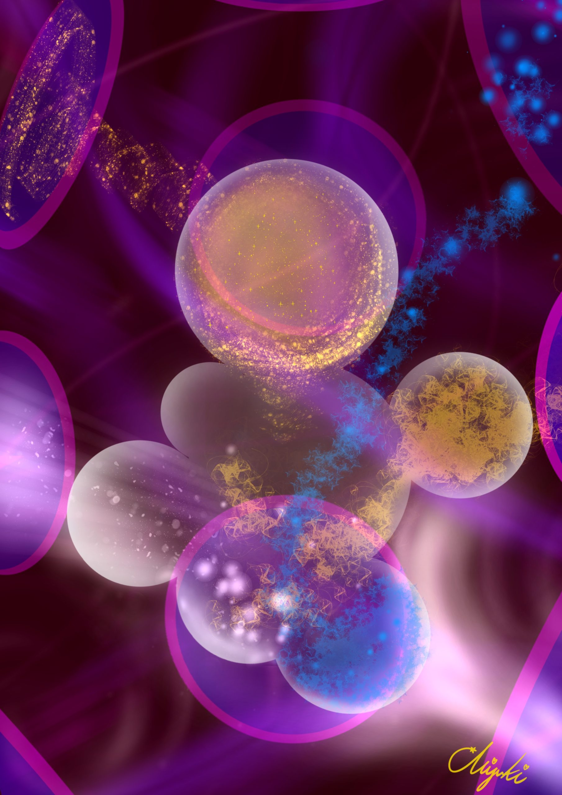 イラストをご覧ください。あなたの場合、彼ら(意識の集合体)とともに行動し、彼らの中で育てられたからか・・・器(ボトル)を創ってから、エネルギーを入れるスタイルではなく、彼らがいろんな場(次元を超えて)に行き、エネルギーを吸収する時に創ったエネルギーボールをくっつけていくスタイルです。