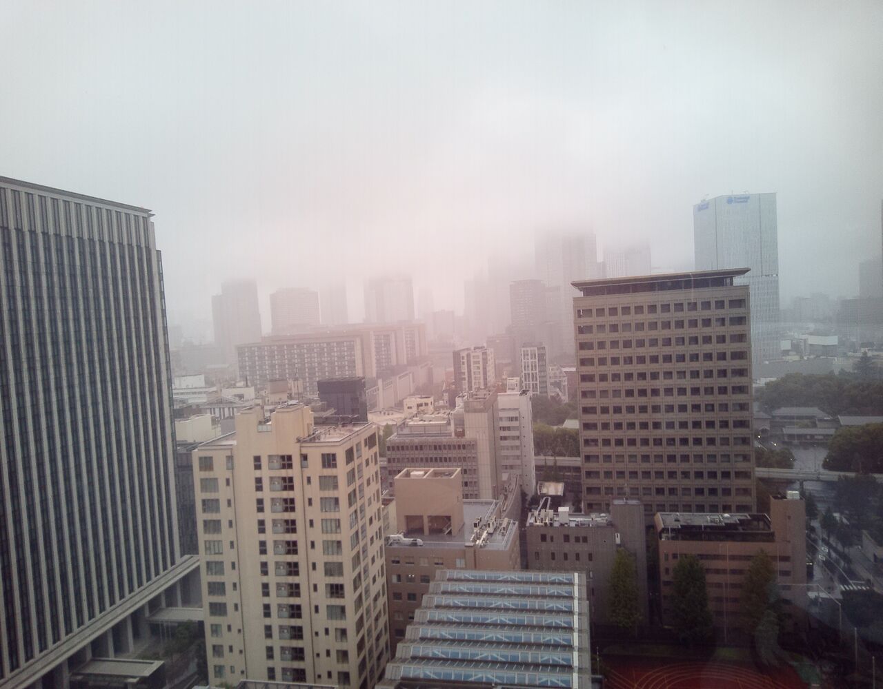 東京三日目の朝、今朝も客室の窓から写真を撮ってみました。昨日とは打って変わって、少し薄暗く感じる曇り空です。