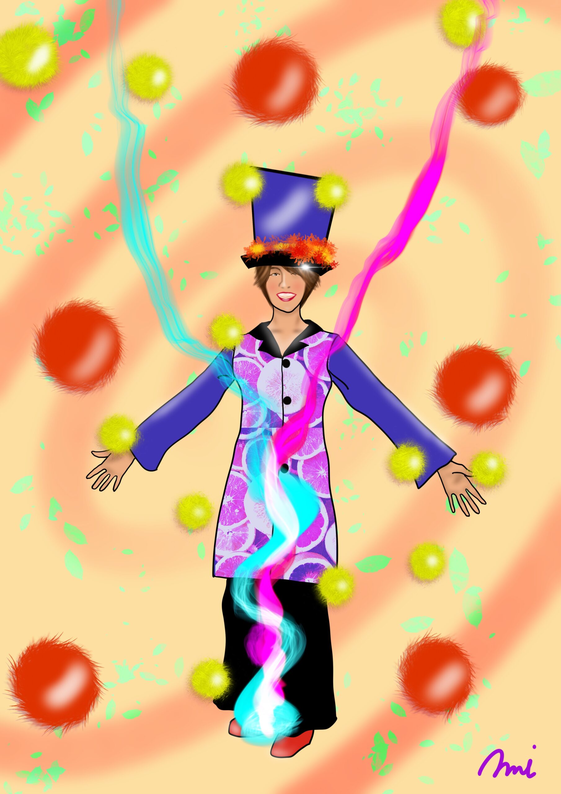 細胞たちの興味が他に移っていること、それが今回のイラストのテーマとなりました。”インプットはもうつまらない!全身からわいてくる新しいアイデアを表現したい!していこう!”と言っています。