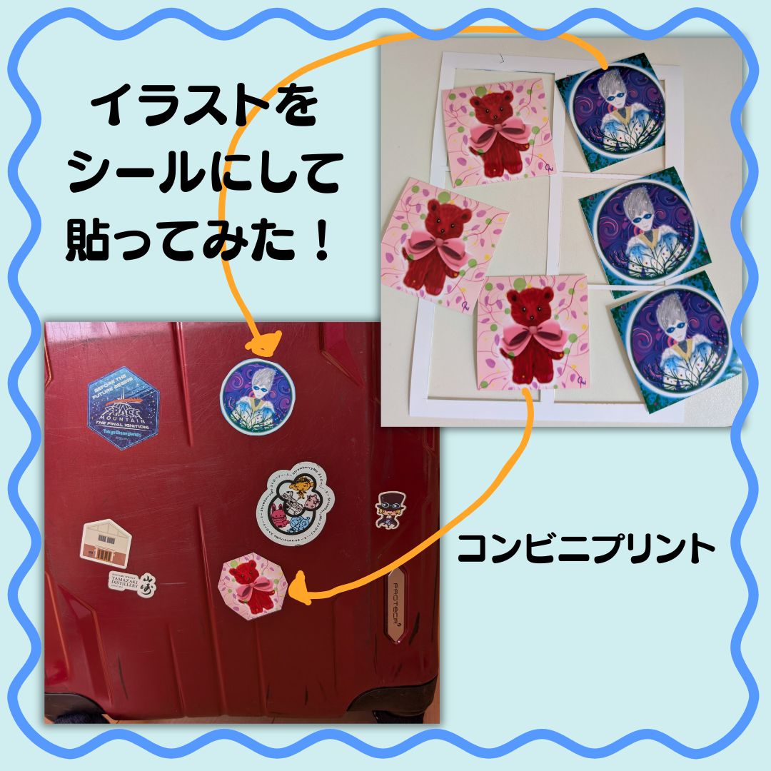ちょっと他のシールとのバランスを見て、チョキチョキ切って形を変えたけど、なんか、目立つよね?(笑)。これなら、どこから見ても、私のだってわかるし、ちょっとハマるかも(笑)。これも配ろう!(求められていない?けど)おまけシール。私が面白いから良いんだ(笑)。