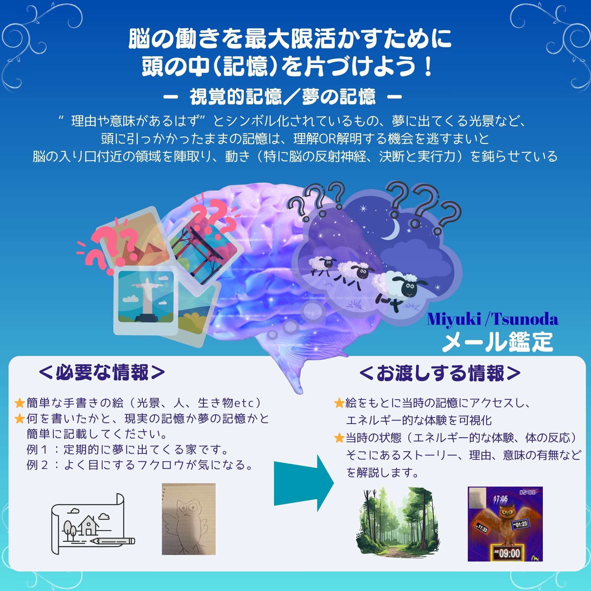 脳の働きを最大限活かすために、頭の中(記憶)を片付けよう!というテーマで行うメール鑑定です。
