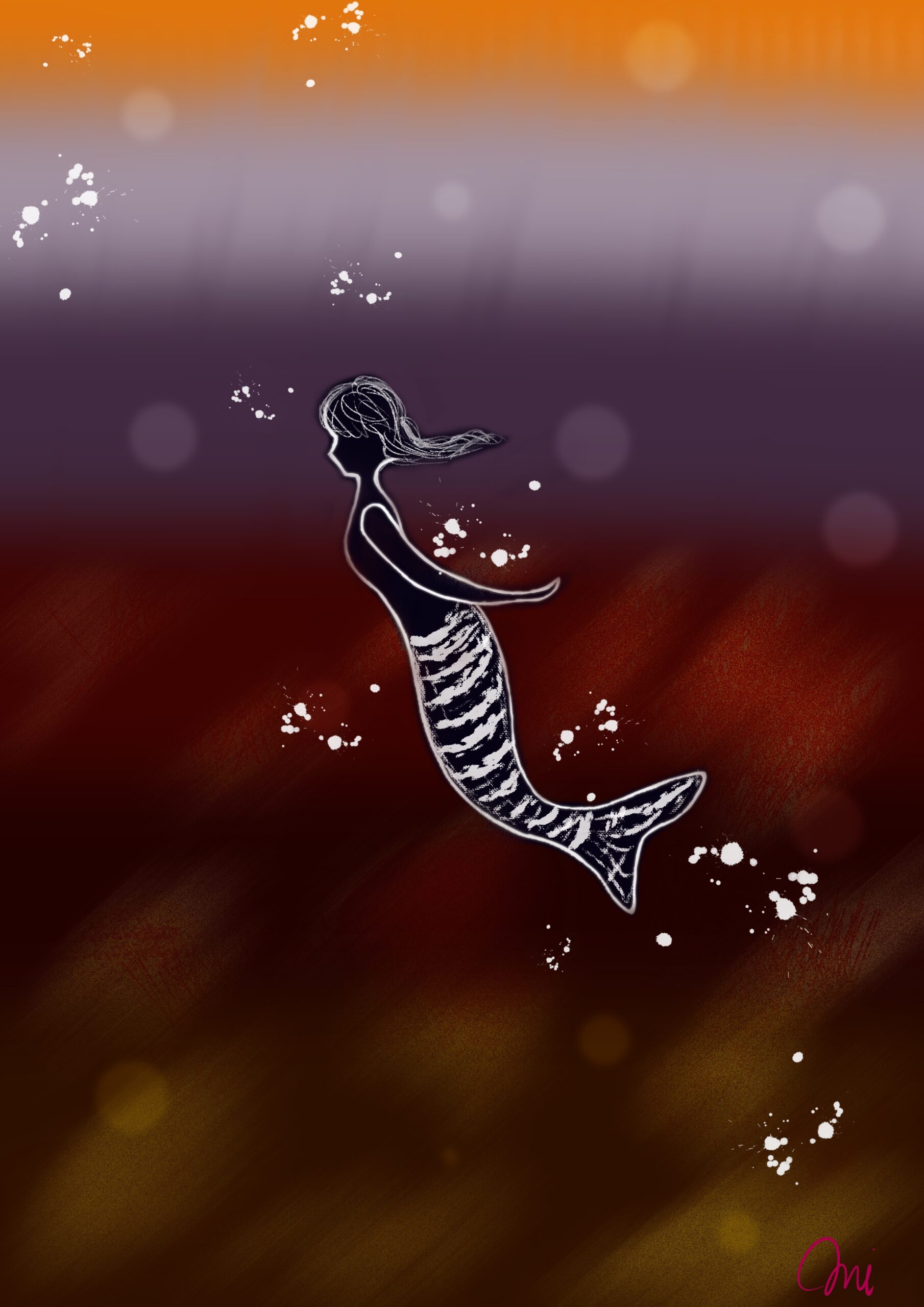 あえて、混じり合わず独立していることを強調し、あなたに理解させるために水を描かずに、水の生物である人魚を描いたそうです。